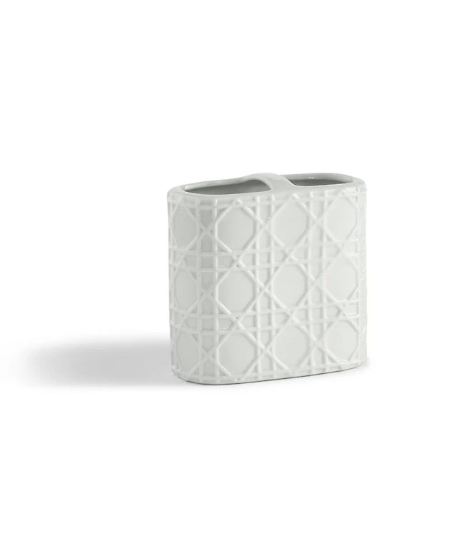 Cassadecor Embossed Wicker Design Porcelain Toothbrush Holder