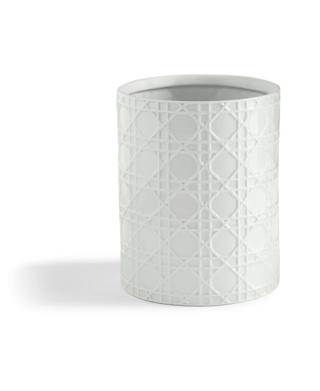 Cassadecor Embossed Wicker Design Porcelain Wastebasket
