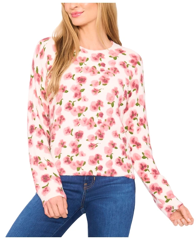 CeCe Women's Flower Applique Long Sleeves Sweater
