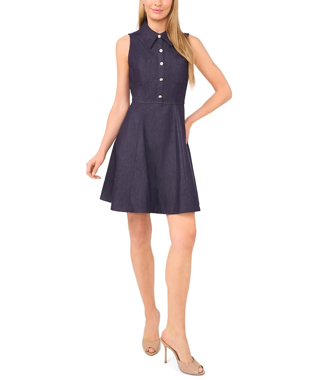 CeCe Women's Collar Trim Sleeveless Mini Dress