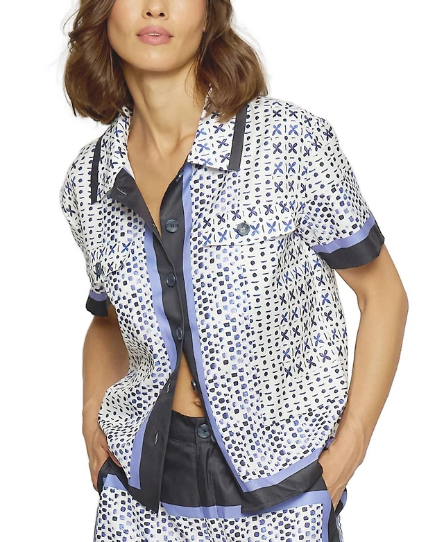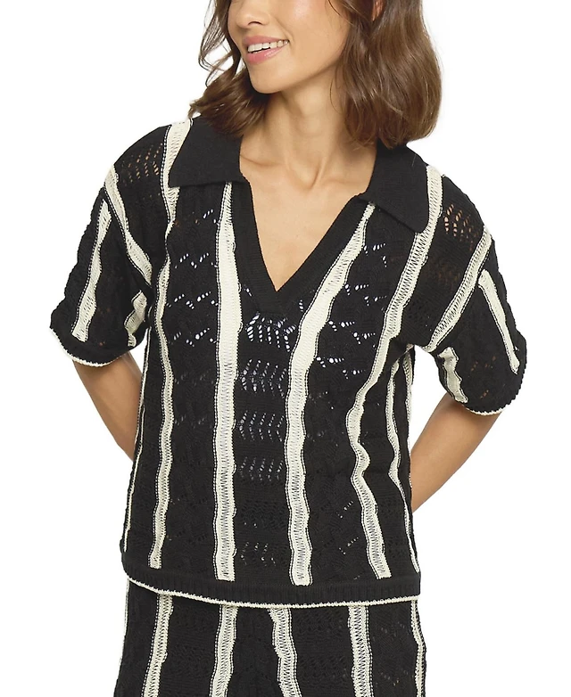 Central Park West Women's Novelty Stitch Polo Pullover Top