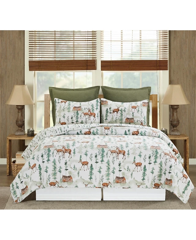 Keaton Bear Deer Brown Cabin Lodge King 3 Piece Quilt Set