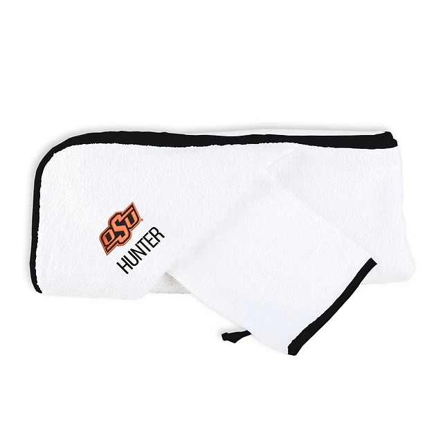 Infant Chad & Jake White Oklahoma State Cowboys Primary Personalized Hooded Towel & Mitt Set