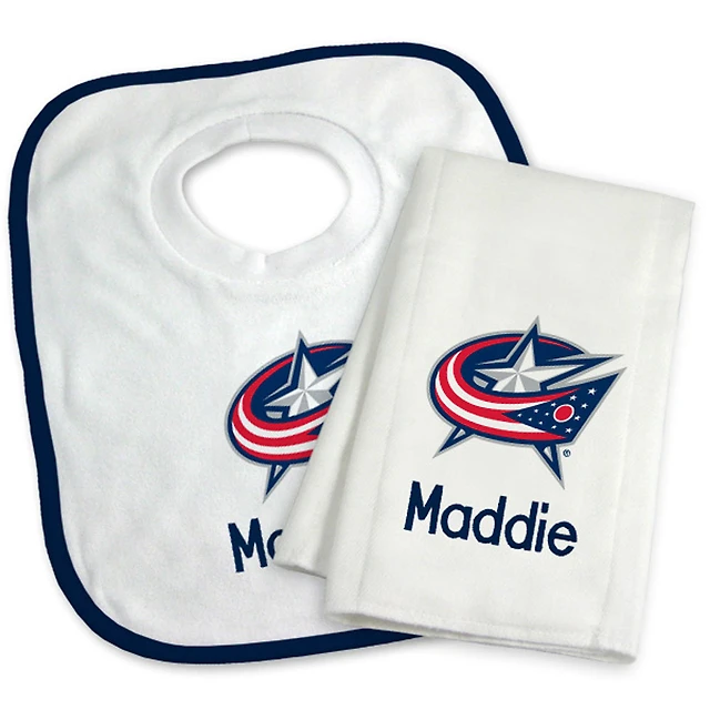 Newborn & Infant White Columbus Blue Jackets Personalized Bib & Burp Cloth Set