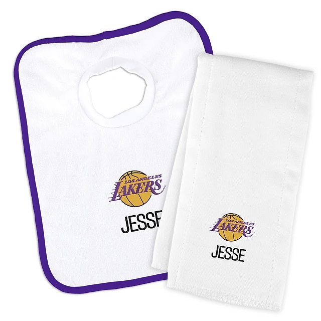Newborn & Infant White Los Angeles Lakers Personalized Bib & Burp Cloth Set