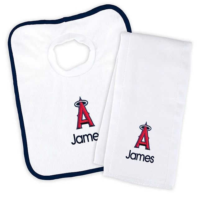 Newborn & Infant White Los Angeles Angels Personalized Bib & Burp Cloth Set
