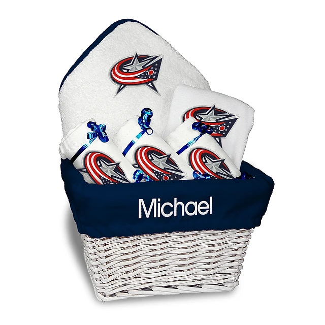 Newborn & Infant White Columbus Blue Jackets Personalized Medium Gift Basket