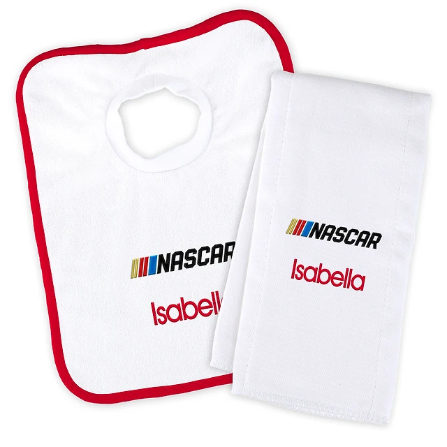 Newborn & Infant White NASCAR Personalized Bib & Burp Cloth Set
