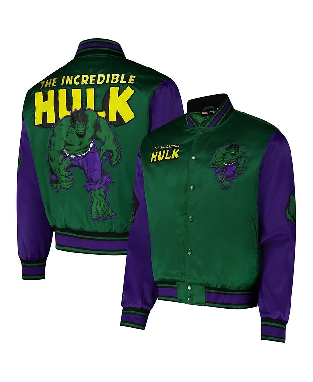 Chalk Line Men's Green The Incredible Hulk Quilted Satin Full-Snap Jacket