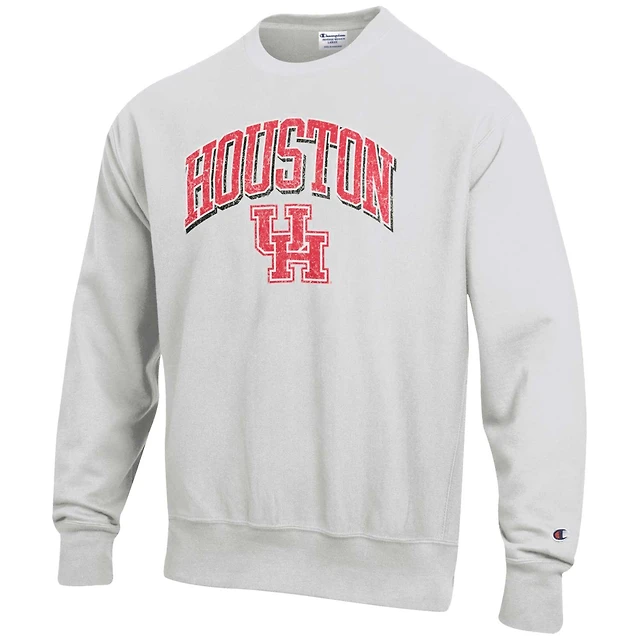 Men's Champion Gray Houston Cougars Arch Over Logo Reverse Weave Pullover Sweatshirt