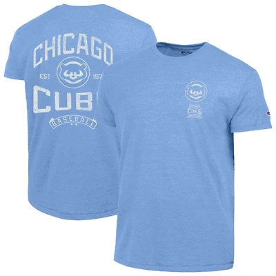 Men's Champion Light Blue Chicago Cubs Vintage 3-Hit Tri-Blend T-Shirt