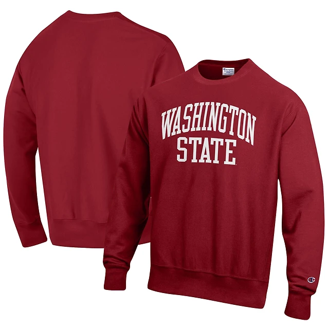 Men's Champion Crimson Washington State Cougars Relaxed Fit Arch Reverse Weave Pullover Sweatshirt