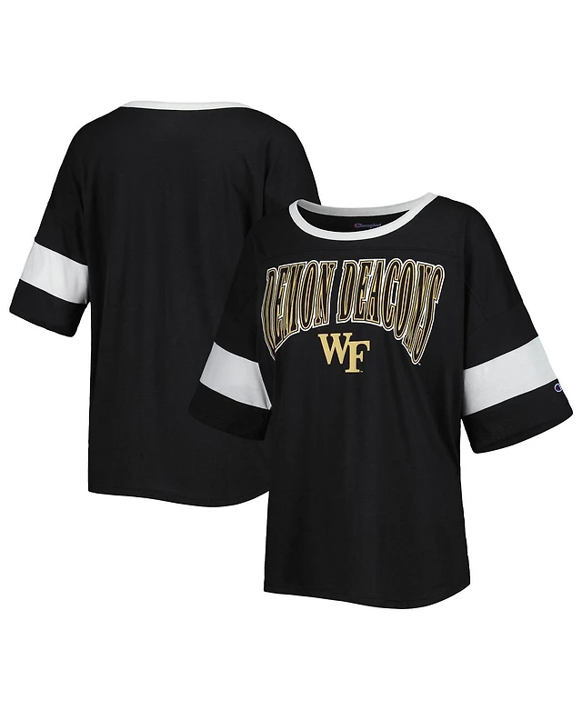 Women's Champion Black Wake Forest Demon Deacons Jumbo Arch Striped Half-Sleeve T-shirt