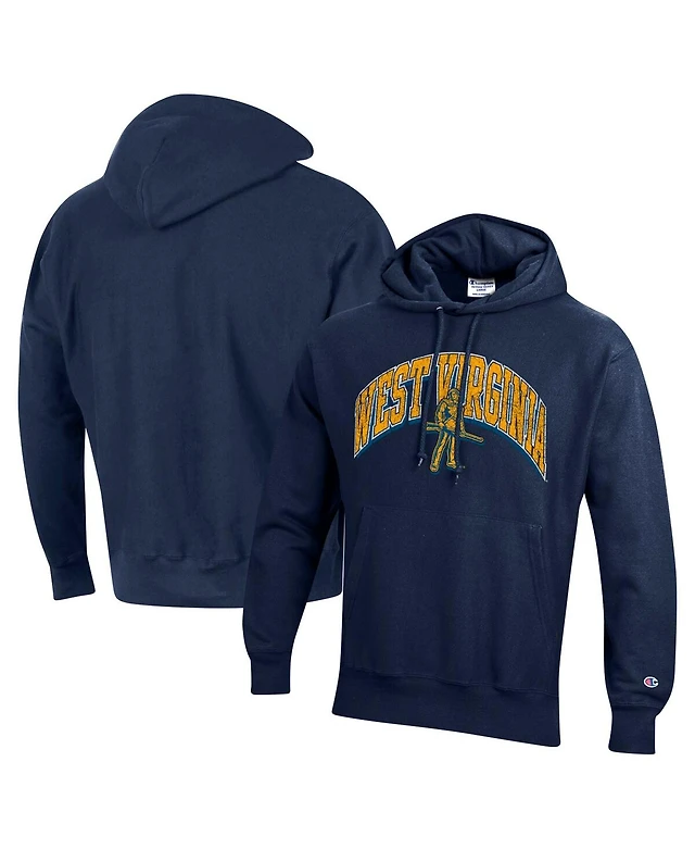 Champion Men's Navy West Virginia Mountaineers Vault Late Night Reverse Weave Pullover Hoodie