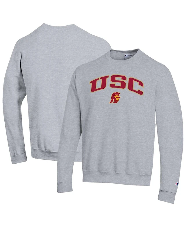 Champion Men's Heather Gray Usc Trojans Arch Over Logo Pullover Sweatshirt