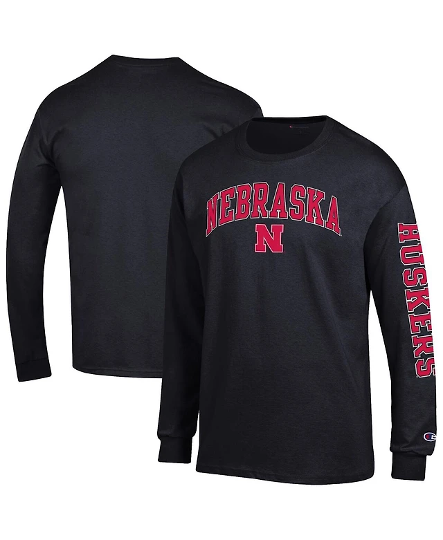 Champion Men's Black Nebraska Huskers Arch Over Logo 2-Hit Long Sleeve T-Shirt