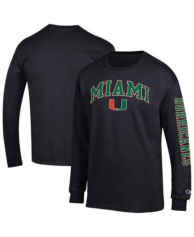 Champion Men's Miami Hurricanes Arch Over Logo 2-Hit Long Sleeve T-Shirt