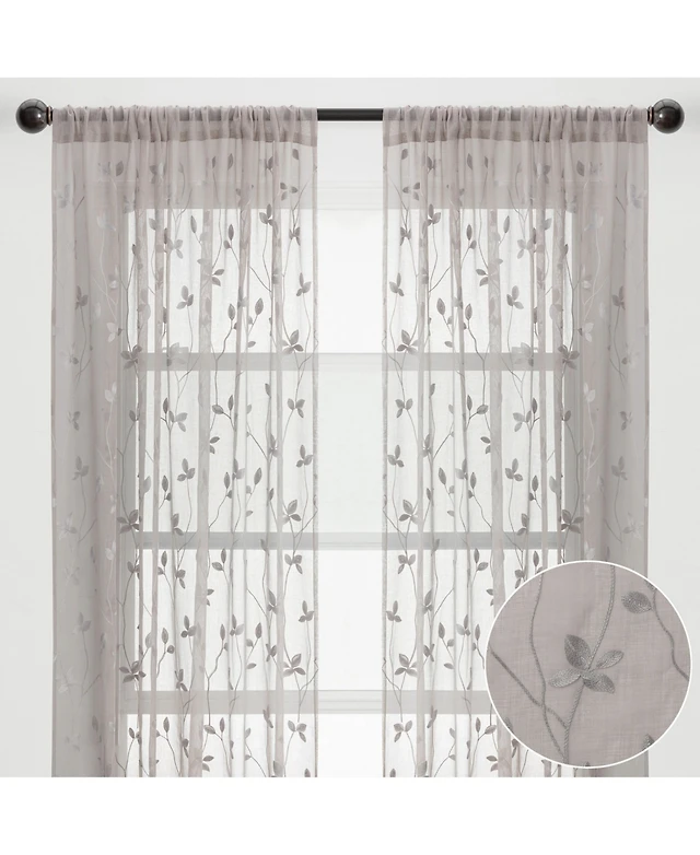 Chanasya Premium 2-Panel Floral Textured Sheer Curtain Panels - 3-in-1 Back Tab, Rod Pocket