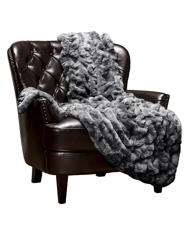 Chanasya Premium Ruched Faux Fur Throw Blanket - Luxurious, Soft Reversible Mink 108" x 86” (King Size) Dark Gray