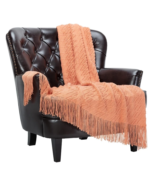 Chanasya Premium Textured Knit Throw Blanket with Tassels - Soft, Cozy for Couch, Bed, Living Room 50" x 65” Orange