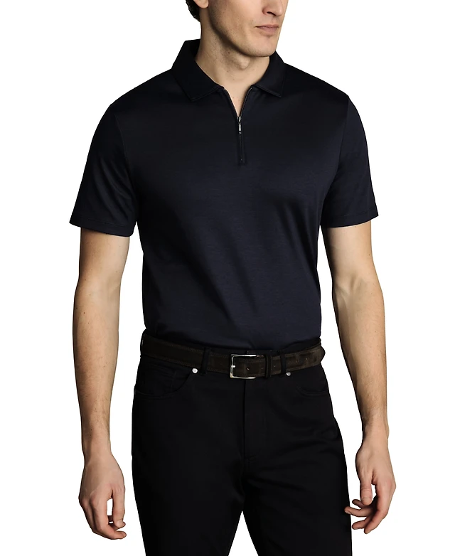 Charles Tyrwhitt Men's Mercerized Cotton Short Sleeve Zipper Polo Shirt