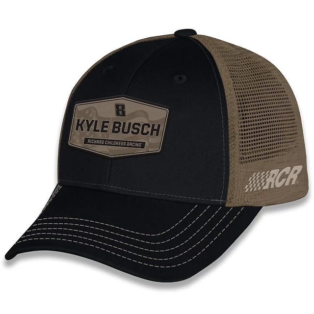 Unisex Checkered Flag Sports Black Kyle Busch Vintage Patch Trucker Adjustable Hat