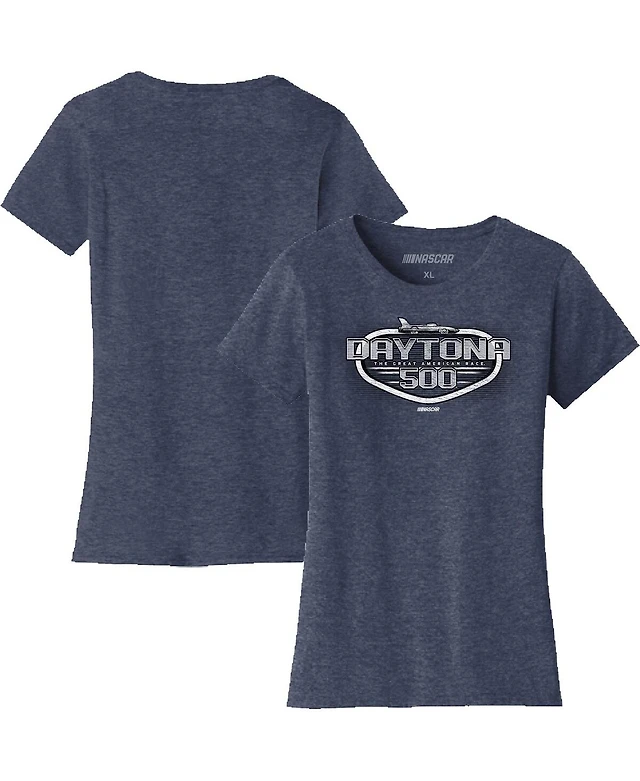 Checkered Flag Sports Women's Heather Navy Daytona International Speedway 2025 500 Graphic T-Shirt