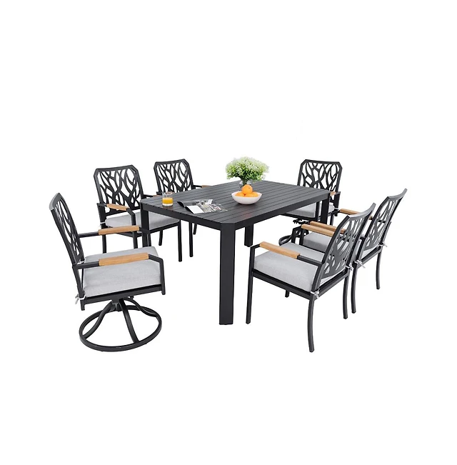 Chic Crate - 3-Piece Rattan Outdoor Furniture Set Modern Swivel Chairs & Square Table with Chat Group Design