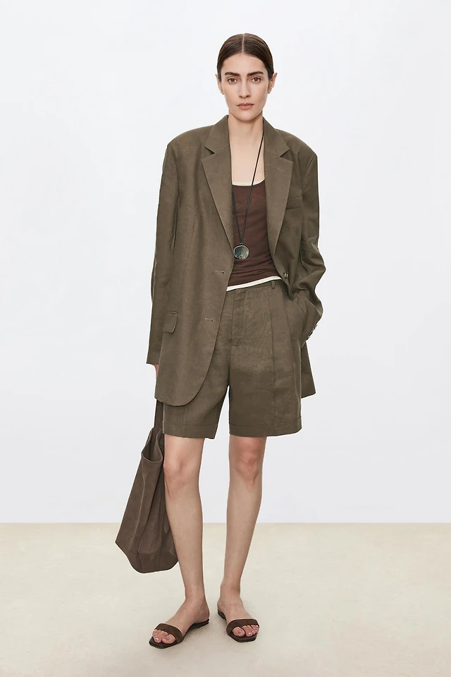 Slub Cotton Linen Oversized Blazer Vest