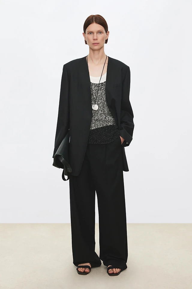 Heavy Crepe Silk Blazer with Hand-Knotted Collar