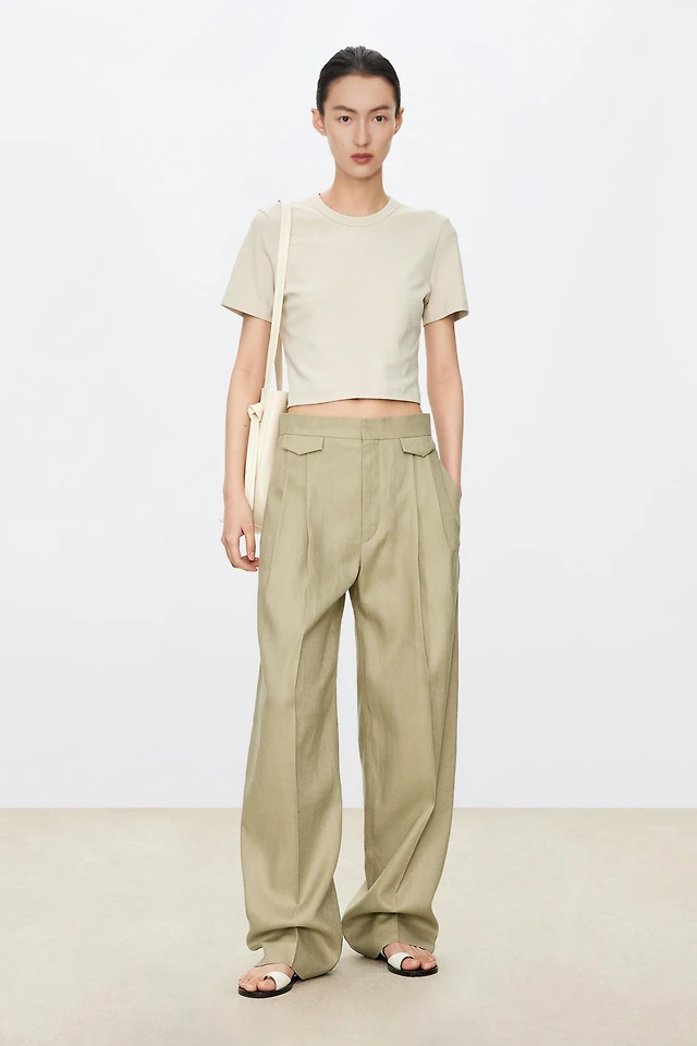 European Denim Long-Belt High-Waist Straight-Leg Pants