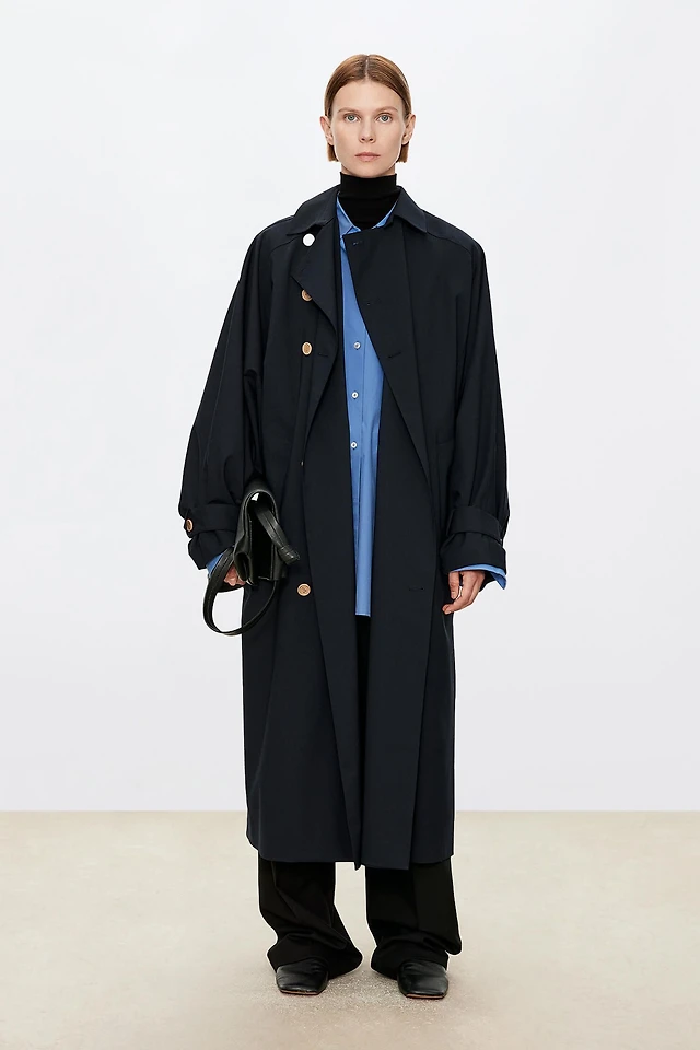 Silk-Wool Heavy Crêpe Trench-Style Coat