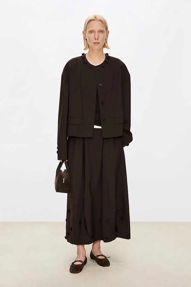 European Fine-spun Wool Lily of the Valley Midi Skirt