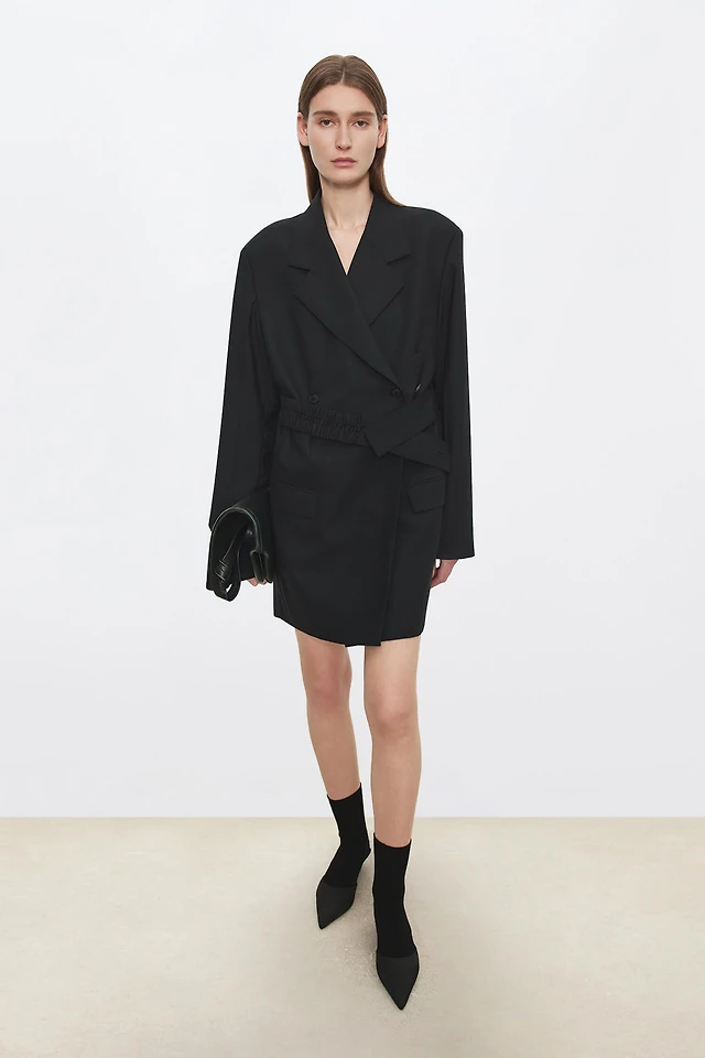Spanish Lambsuede Stand-Collar Tailored Jacket
