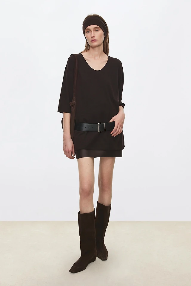 Pure Wool Short-Sleeve Top with Natural Rolled Hem