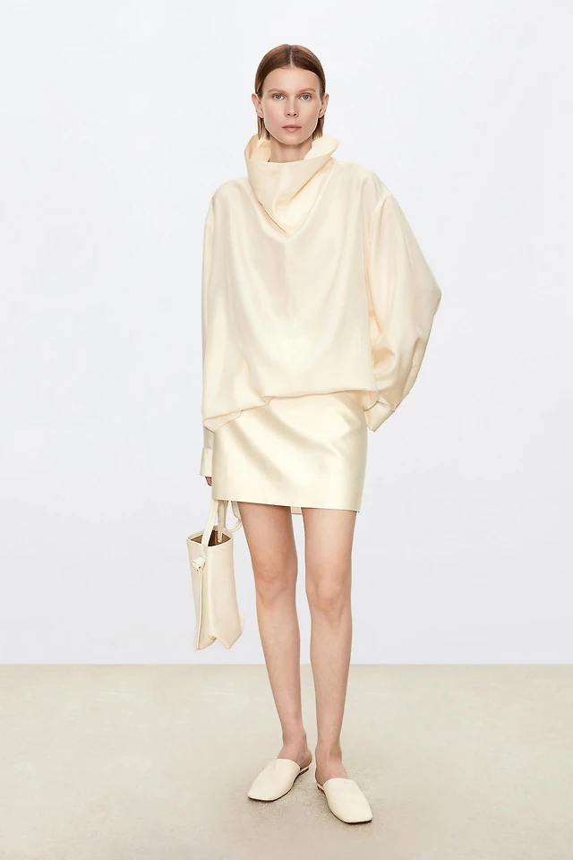 Japanese Draped Triacetate Double-Satin Raw Hem Skirt