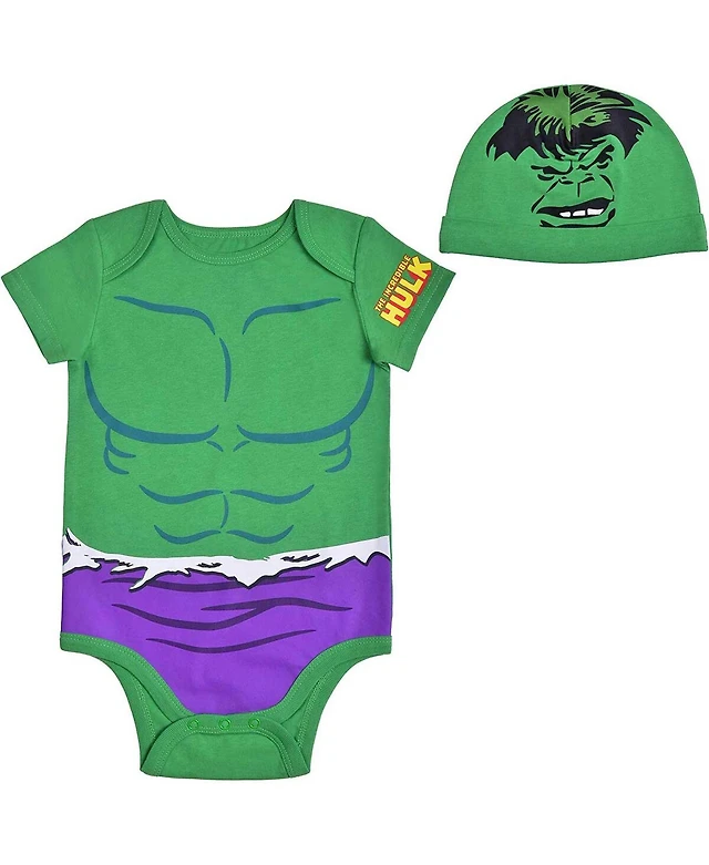 Baby Boys and Girls Green Hulk Bodysuit Hat Set