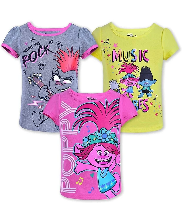 Children's Apparel Network Girls Toddler 3-Pack Pink/Yellow/Gray Trolls Puffer T-Shirt Set