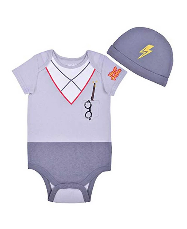 Children's Apparel Network Baby Boys and Girls 2-Piece Gray Harry Potter Hogwarts Uniform Bodysuit Hat Set
