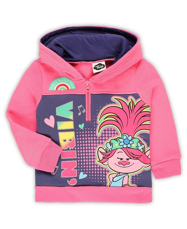 Children's Apparel Network Toddler Pink Trolls Graphic Half-Zip Hoodie