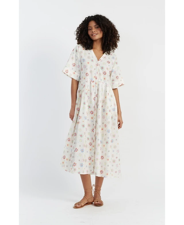 Chinti and Parker Women's & Linen-Cotton Etoile V-Neck Sundress