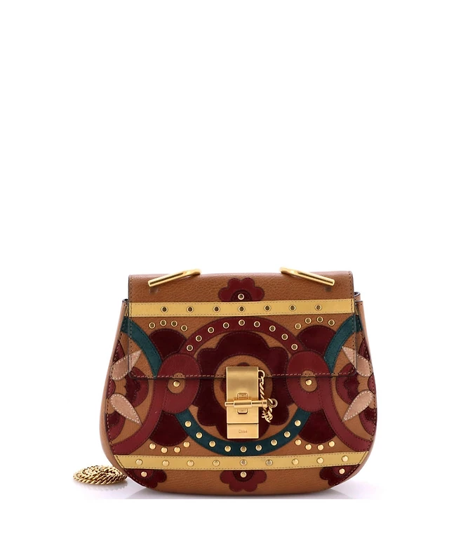 Pre-Owned Chloe Small Drew Patchwork Crossbody Bag Studded Leather with Suede