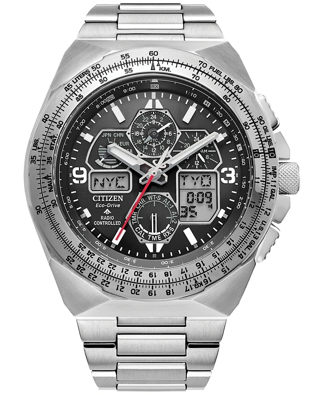 Citizen Eco-Drive Men's Chronograph Promaster Land Gray-Tone Stainless Steel Bracelet Watch 44mm