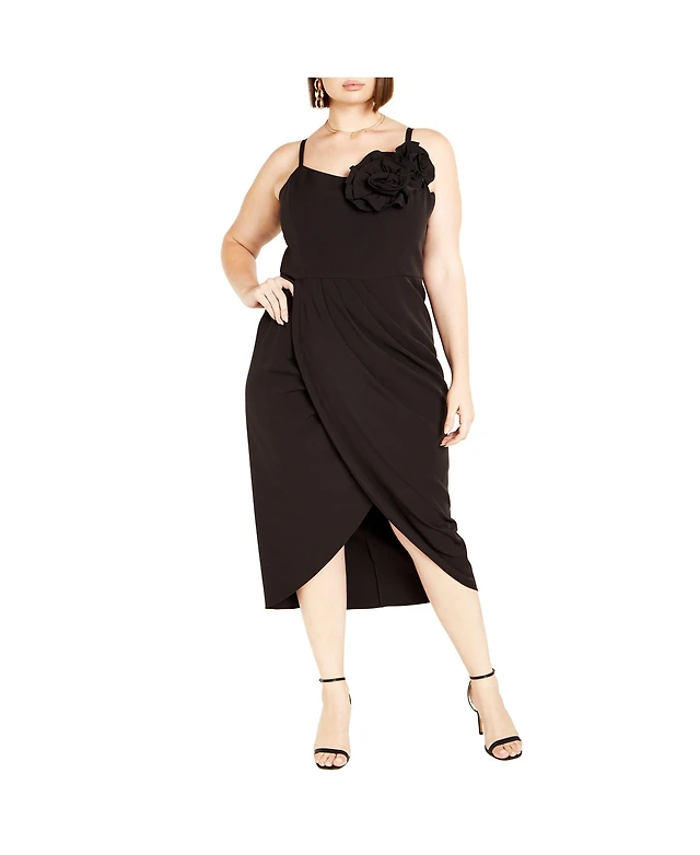 City Chic Plus Pleated Ombre Maxi Dress - black