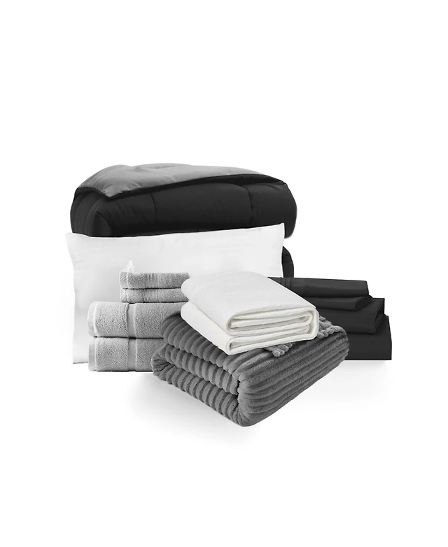 14 Piece Complete College Dorm Room Essentials Bedding & Bath Bundle - Twin Xl - Black And Gray