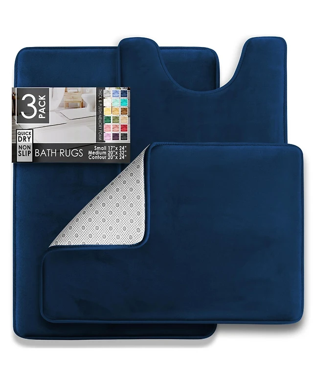 Clara Clark 3 Piece Ultra Soft Non-Slip Plush Memory Foam Bath Rug Set - Small, Large & Contour
