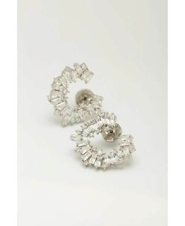 Classicharms Crescent Baguette Cubic Zirconia Stud Earrings
