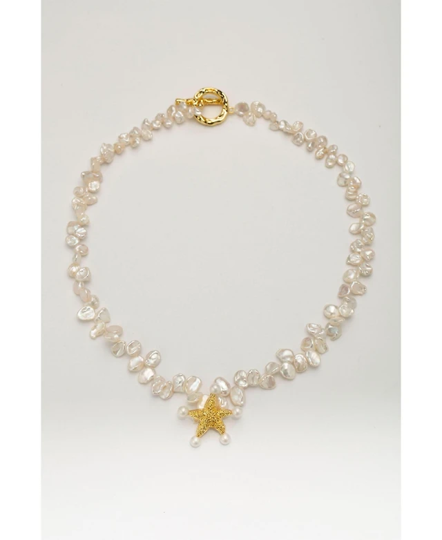 Classicharms Lila Starfish Charm Freshwater Petal Pearl Choker Necklace