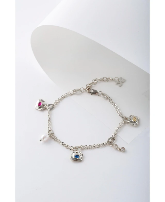 Iris Colored Cubic Zirconia and Freshwater Pearl Charms Bracelet