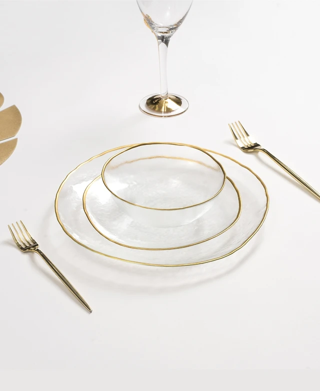 Glass Dessert Plates, Set of 4 - Gold